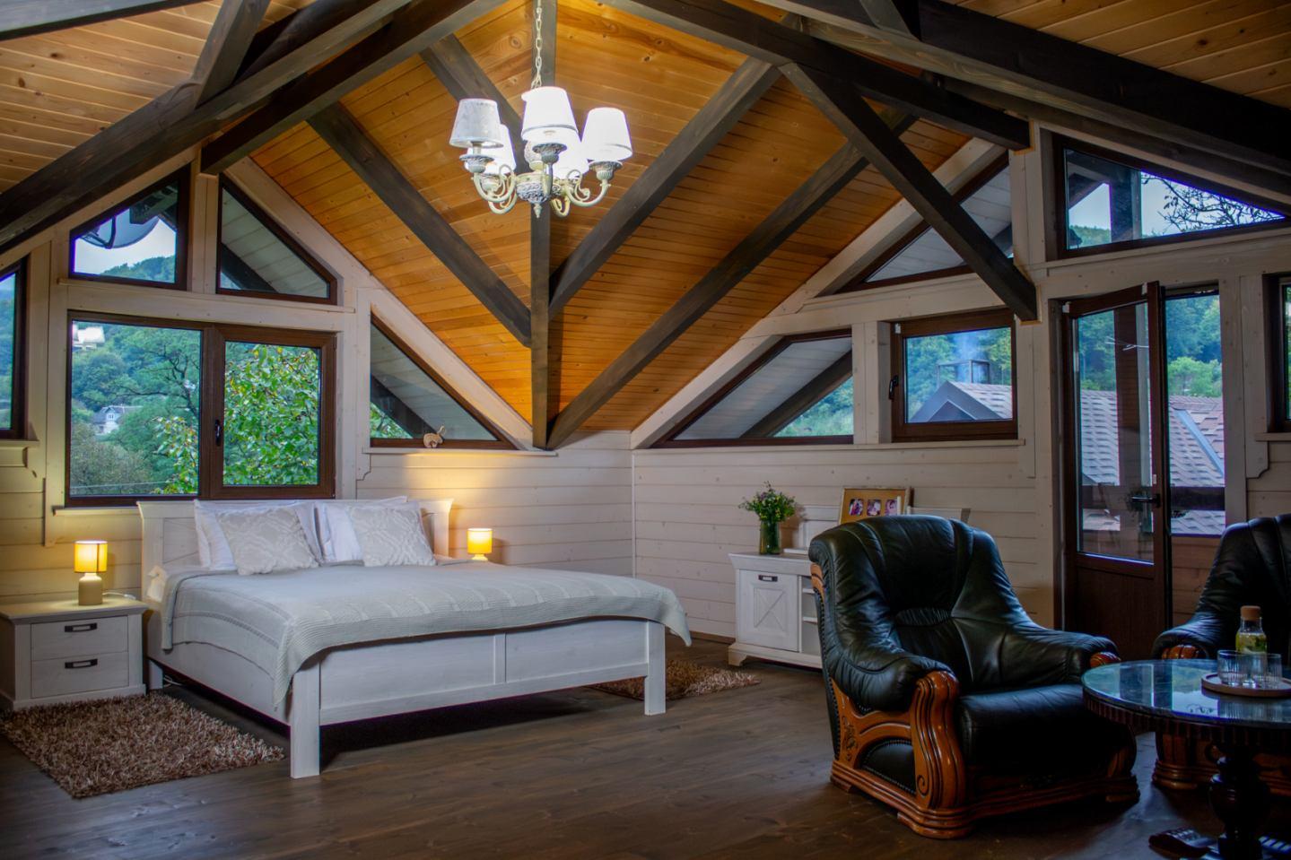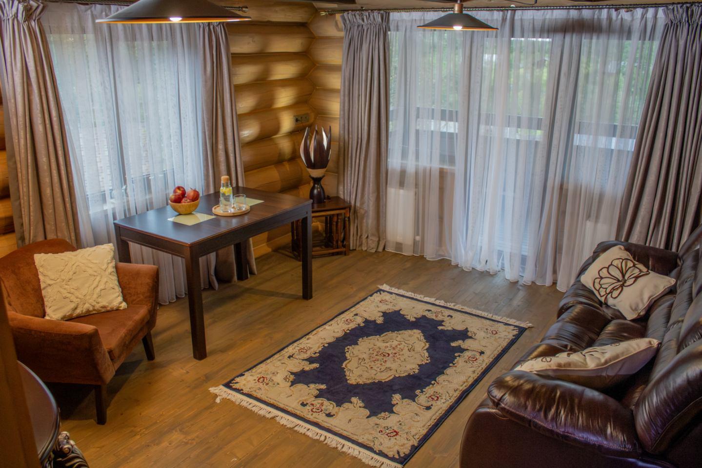 Їдальня і кухня на першому поверсі. Опалення: пічне. Постійно є холодна та гаряча вода. Руська лазня на 5 осіб.