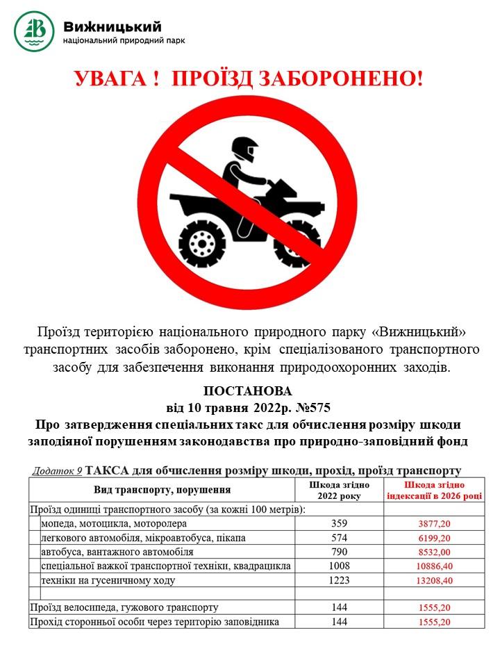 Нагадуємо, що за несанкціонований проїзд територією національного природного парку «Вижницький» передбачена адміністративна відповідальність згідно чинного законодавства.